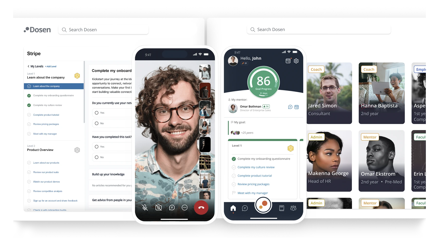 Dosen facilitates a dynamic onboarding experience for your new hires, arming them with essential skills to thrive in their chosen roles. Connect them with industry experts, career coaches, and peers within your organization for guidance and support. Dosen is your partner in helping new hires define their career objectives and increase engagement, employee satisfaction, and promotion rates, leading to a happier and more productive workforce.